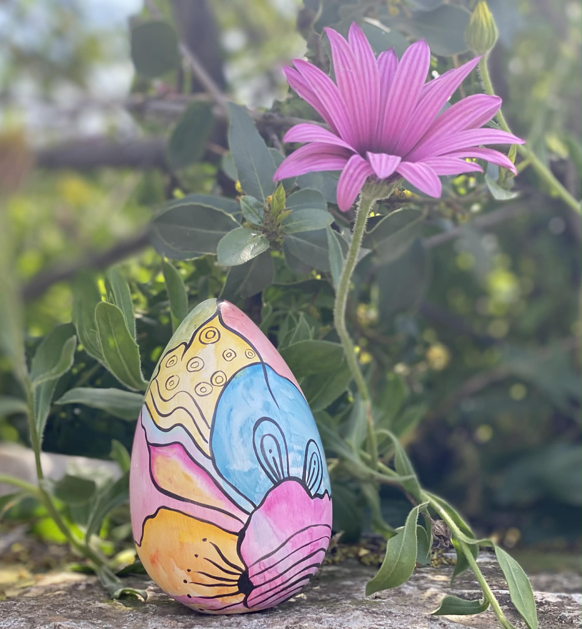 αυγό ξύλινο τόρνου ζωγραφισμένο με έμπευση