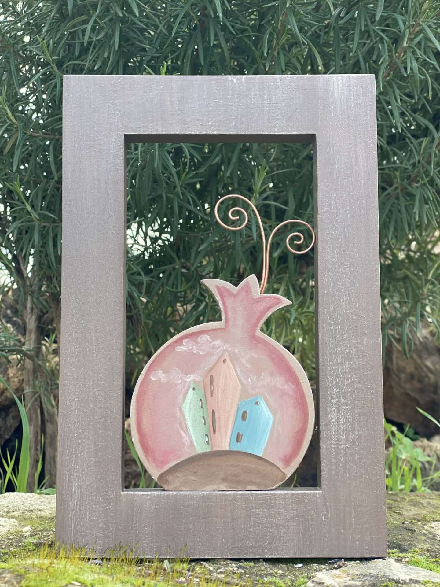 ροζ ρόδι σε ξύλινο πλαίσιο
