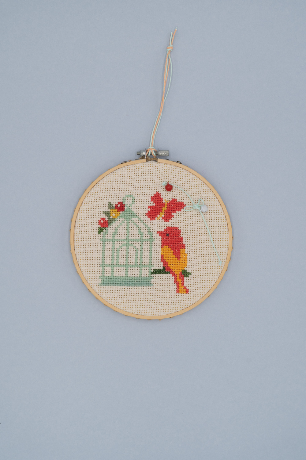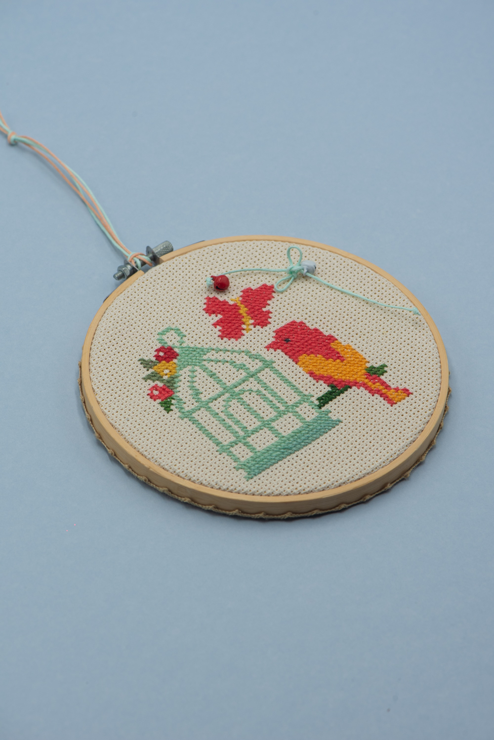 Χειροποίητο κέντημα πουλάκι σε τελάρο 16 εκατοστών.